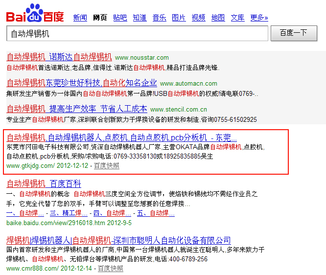 【優化】 岡田科技“自動焊錫機”上升到百度搜索第1名了!