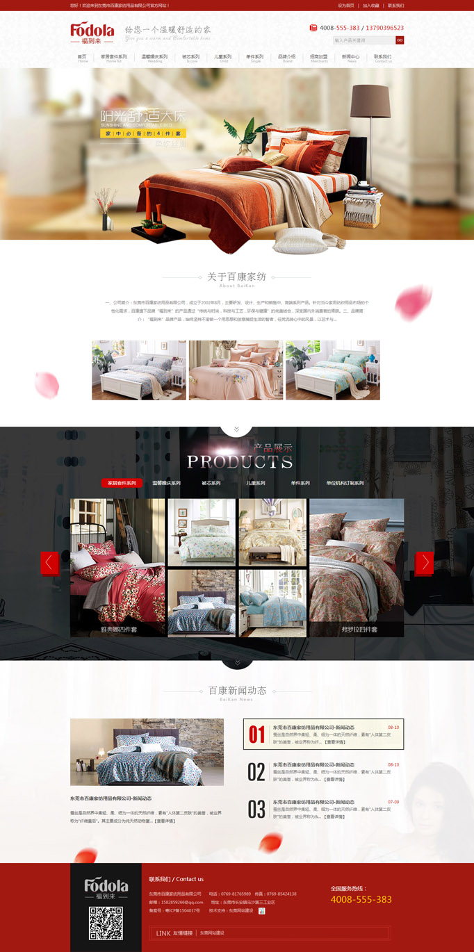 東莞市百康家紡用品有限公司,成立于2002年8月,主要研發、設計、生產和銷售中、高端系列產品。針對當今家用紡織用品市場的個性化需求,百康旗下品牌“福到來”的產品通過“傳統與時尚,科技與工藝,環保與健康”的完美結合,深受國內外消費者的青睞。