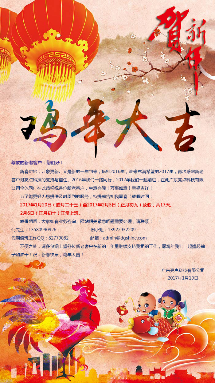 亮點科技2017年春節放假通知!